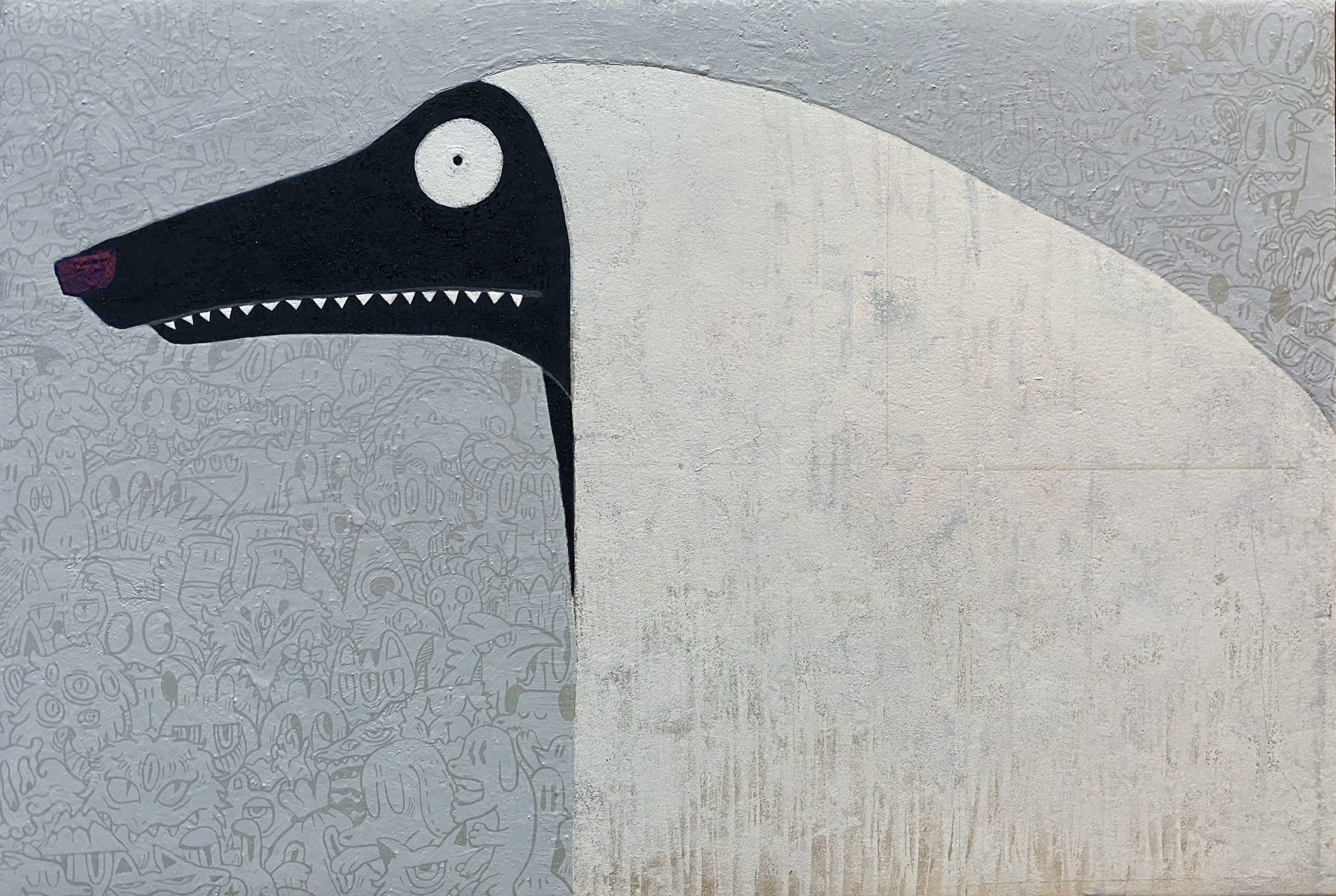 墨汁、京和紙、アクリル、膠(にかわ)Sumi ink, King wo paper, Acrylic, Nikawa glue
