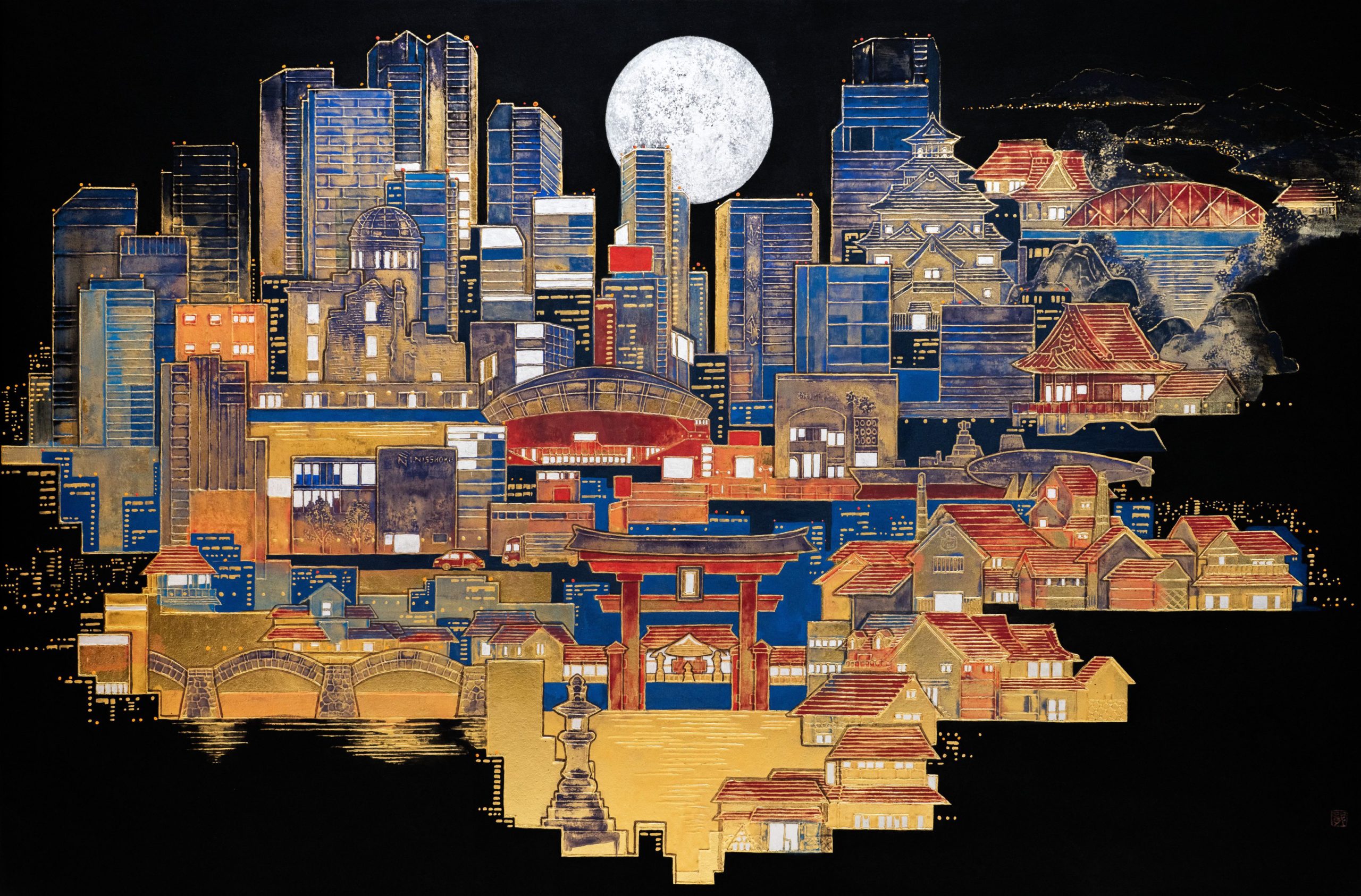 墨汁、京和紙、アクリル、膠(にかわ)、膠彩画用顔料粉 sumi ink, King wo paper, Acrylic, Nikawa glue, Toner