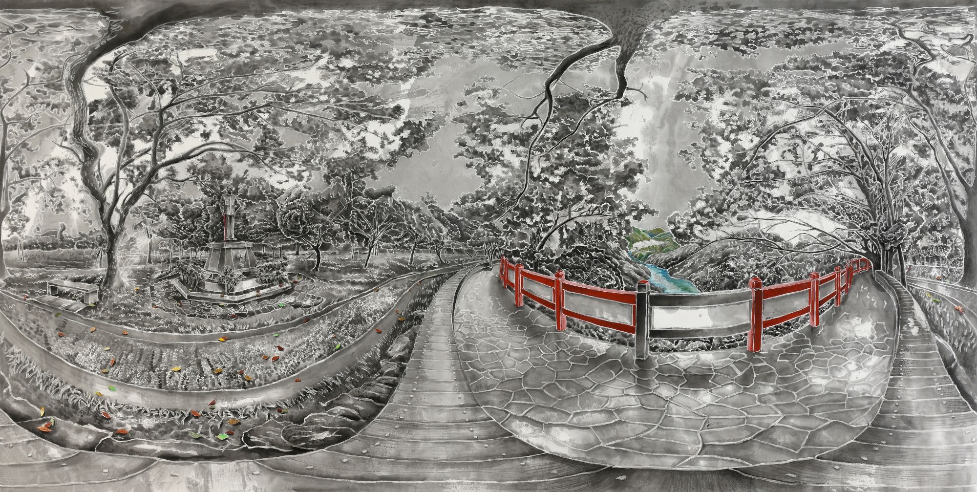 墨汁、紅星宣紙(レッドスター宣紙)、アクリル、膠(にかわ)Sumi ink, Red star xuan paper, Acrylic, Nikawa glue