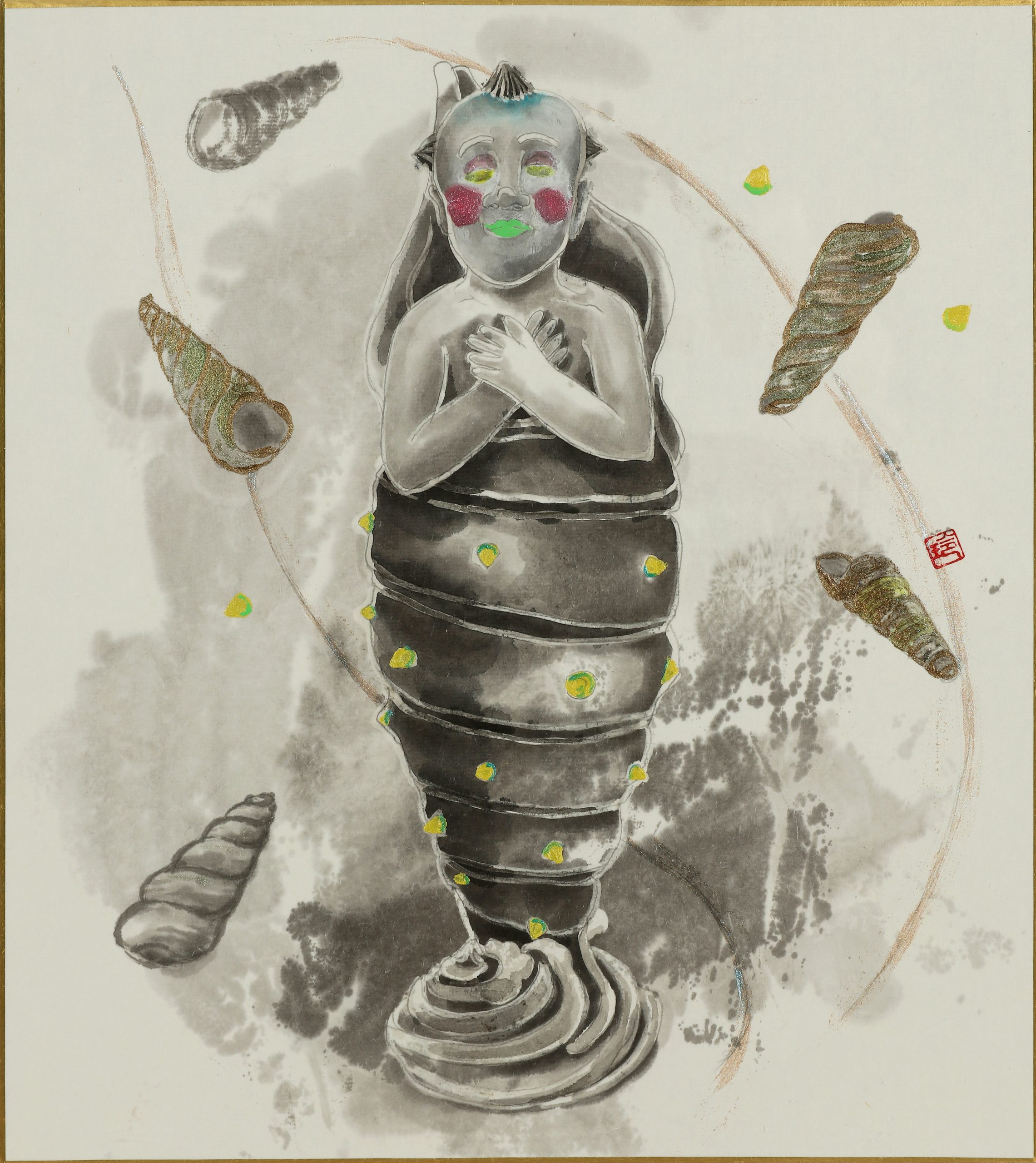 墨汁、京和紙、アクリル、膠(にかわ)、膠彩画用顔料粉 sumi ink, King wo paper, Acrylic, Nikawa glue, Toner