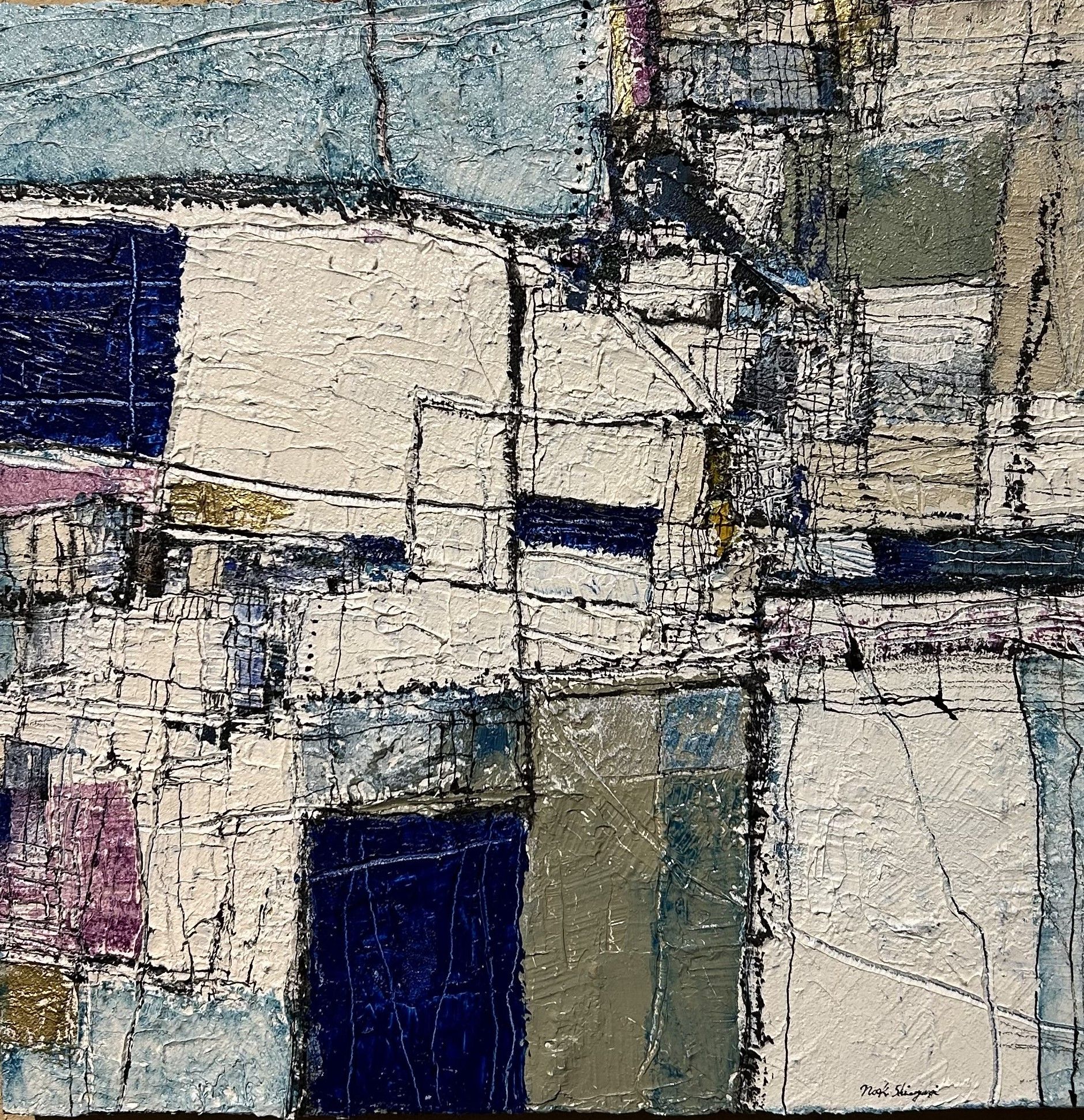 墨汁、京和紙、アクリル、膠(にかわ)、膠彩画用顔料粉 sumi ink, King wo paper, Acrylic, Nikawa glue,Toner